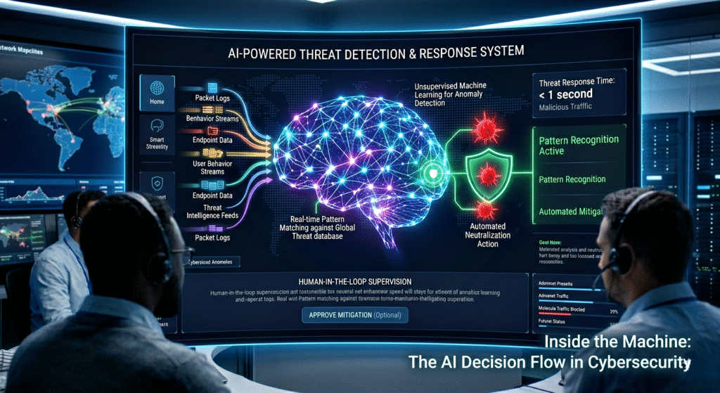 Artificial Intelligence (AI) is transforming cybersecurity by enabling faster and more accurate threat detection. Unlike traditional security systems that rely on predefined rules, AI can analyse large volumes of data in real time and identify unusual patterns.