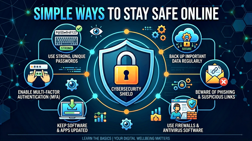 Cybersecurity is simply about keeping yourself safe in the online world. Just like you take care of your home and belongings, you must also protect your digital life.